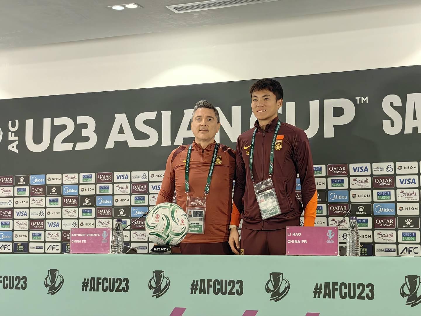 北京时间1月16日,U23亚洲杯四分之一决赛:乌兹别克斯坦vs中国的赛前新闻发布会在吉达的阿卜杜拉-费萨尔王子体育场进行。中国队主教练安东尼奥携球员李昊出席。