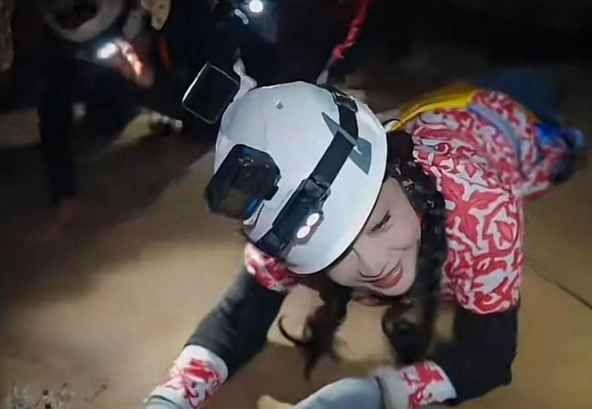 在《一路繁花》中,她跟着节目组辗转贵州溶洞、重庆山城。